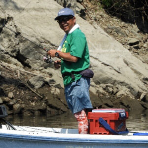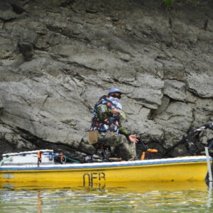 ボートからのルアーフィッシングで釣り上げた、体長30cm以上の生きたラージマウスバス2匹までの総重量で競います。 (ペア選手は2人で2匹までの総重量) |