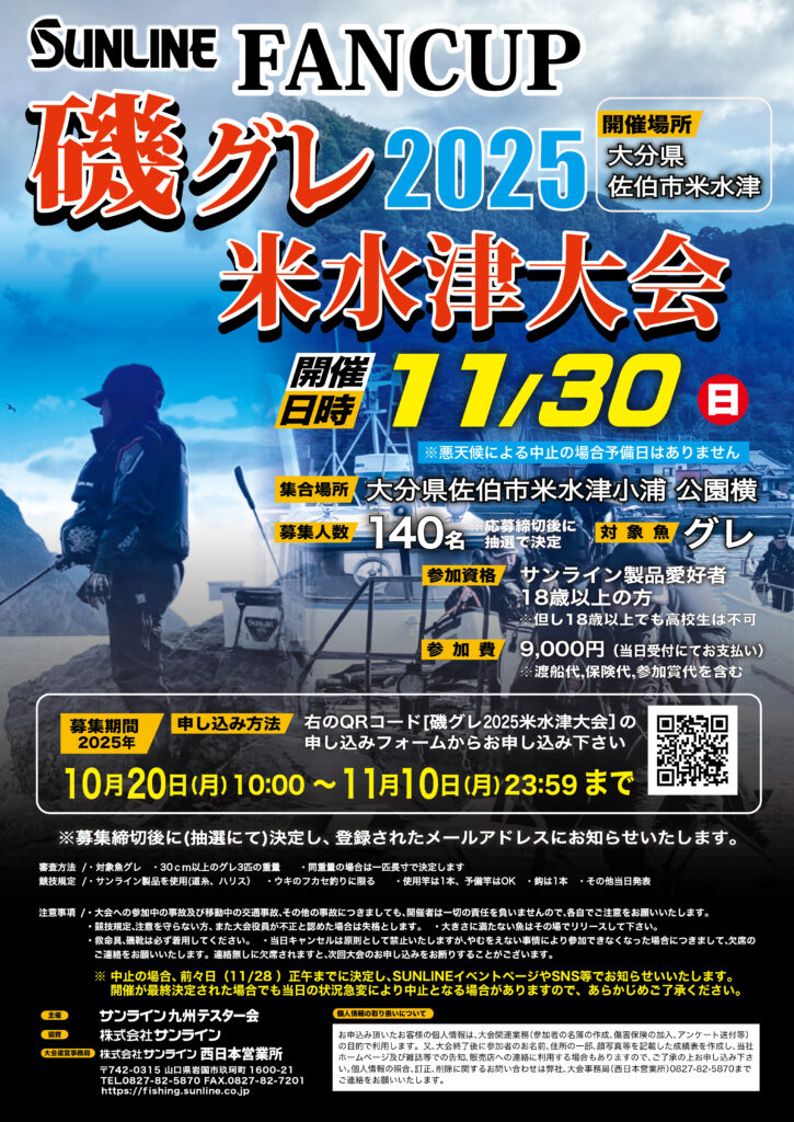 | イベント名 | サンラインファンカップ磯グレ2025 米水津大会 |