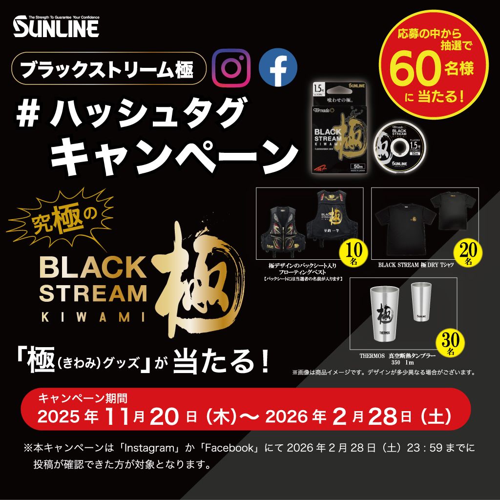 サンラインでは現在 『ブラックストリーム極 #ハッシュタグキャンペーン』開催中 〜2月26日まで!!
