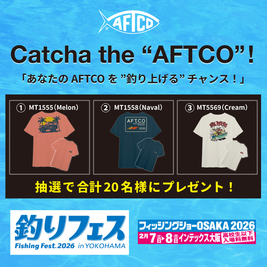 AFTCO JAPAN(日本正規代理店)では 釣りフェス会場 にて キャンペーン開催予定!! 詳細は『釣りフェス会場AFTCOブース』にて!!是非、お待ちしてます。