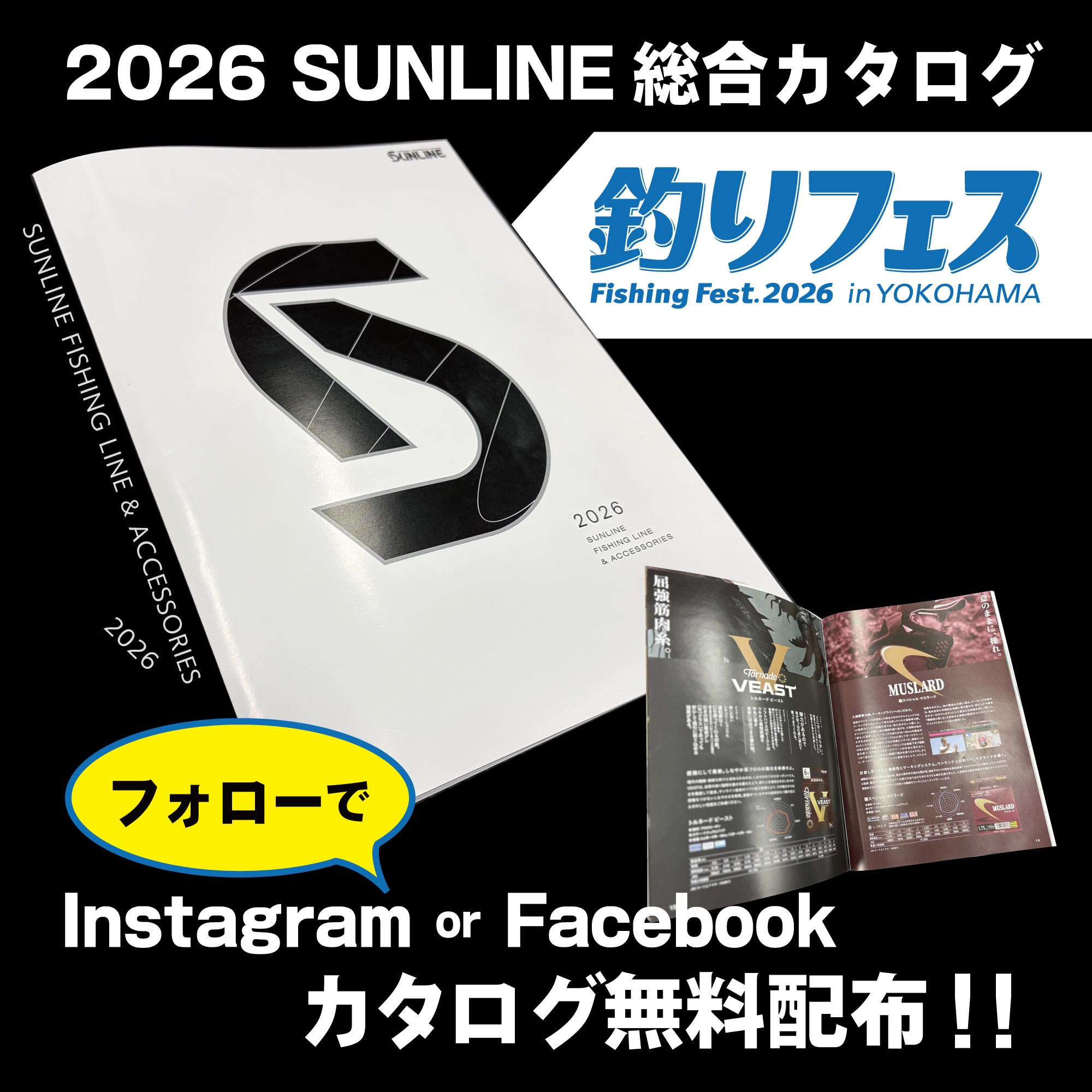 最新の『2026 SUNLINE総合カタログ』 Instagram or Facebookフォローで 無料配布! 会場分、なくなり次第終了となります。 ※AFTCOJAPAN用のパンフレットも無料